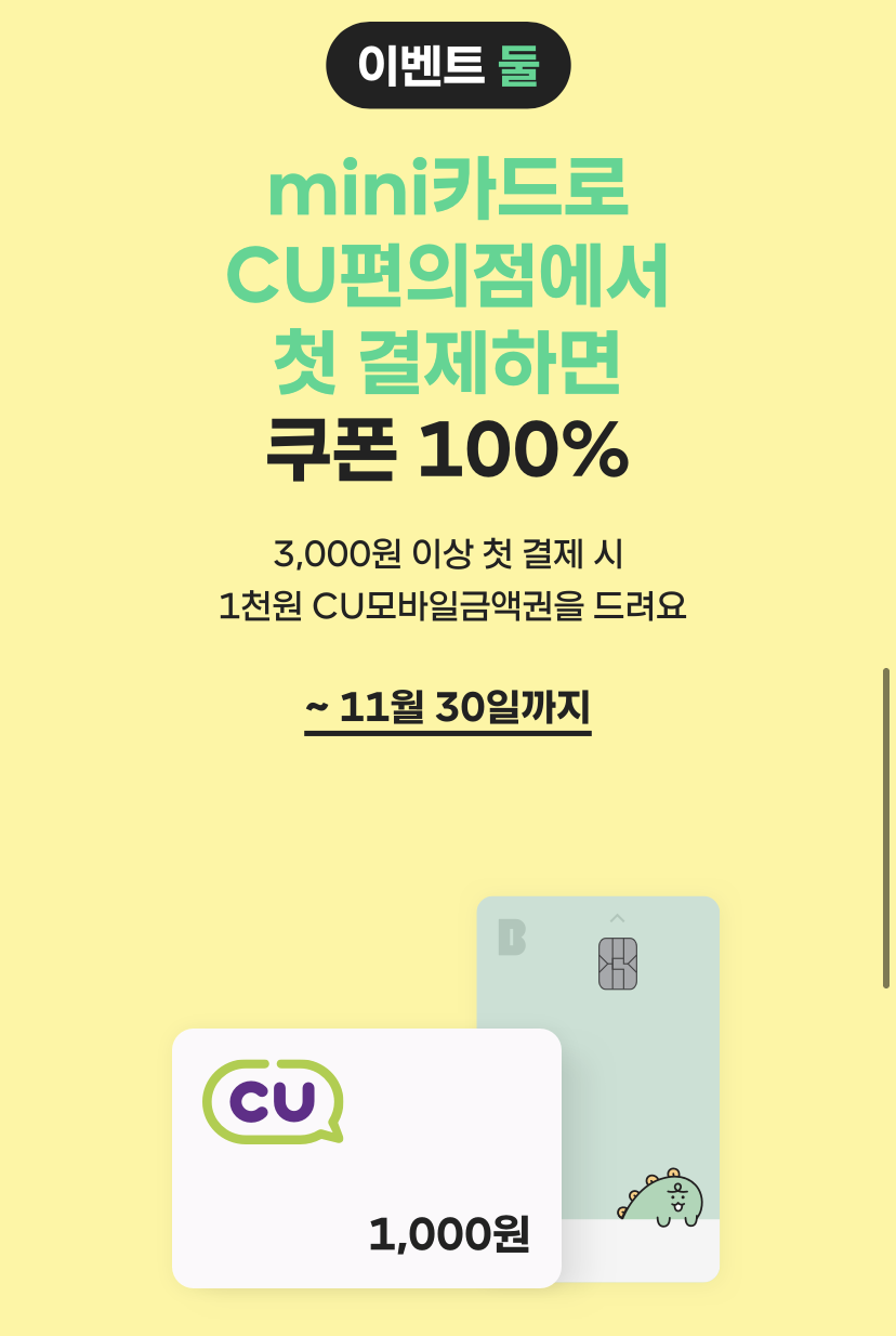 또 미니카드로 CU편의점에서 3천원이상 결제를하면