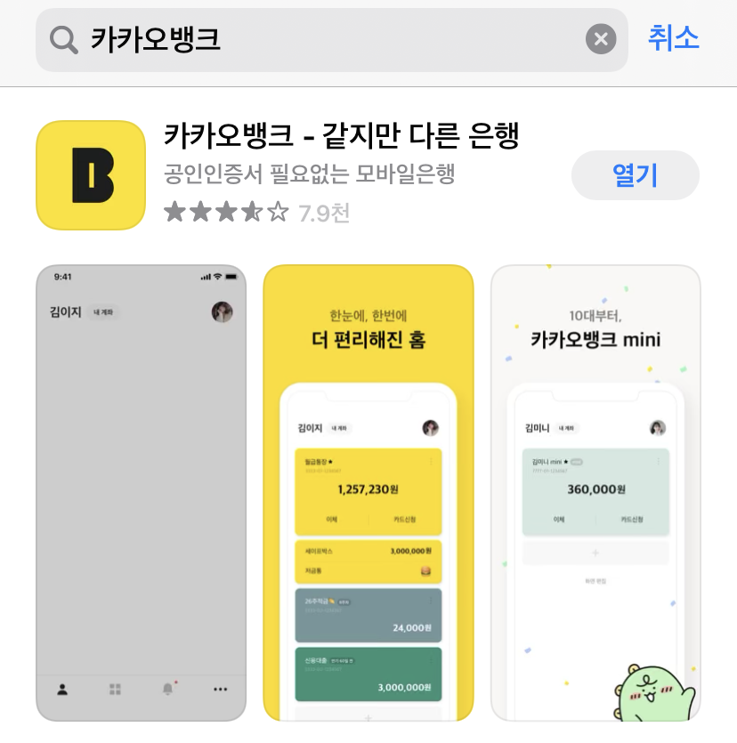 먼저 카카오뱅크 어플리케이션을 다운받아줍니다.