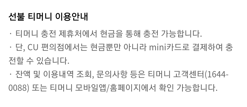 ③CU에서 현금없이 카드로 티머니 충전 가능